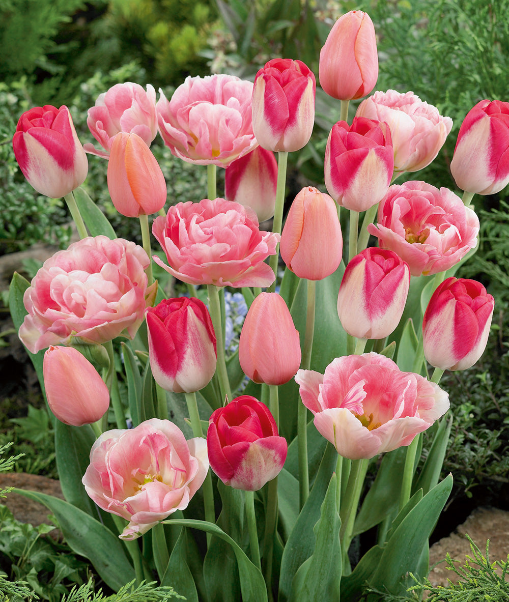 Pretty in Pink! This new pink blend of top grade pink tulips is sure to brighten up your landscape as well as in your cut flower arrangements. From frilly soft pinks to bold bi-colors, you’ll enjoy them for many years to come.